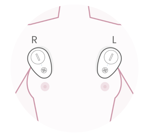 Make sure that the device with the letter L/R is pasted with our plasters on the left/right breast, and the silver detection point should be aligned with the left/right nipple respectively.