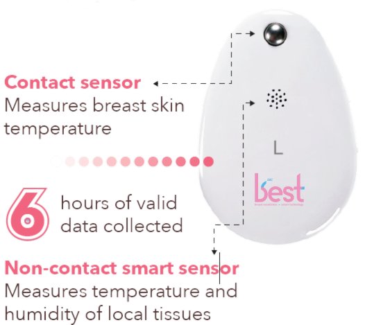 - Non-contact thermal sensor – to measure the local ambient temperature of the breast skin surface.